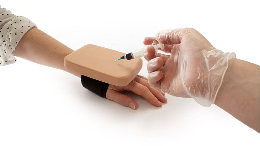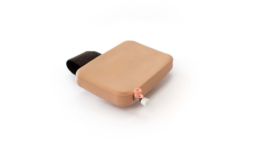 - Kann mit einem standardisierten/simulierten Patienten verwendet werden. Wird am Arm oder auf dem Handrücken festgeschnallt