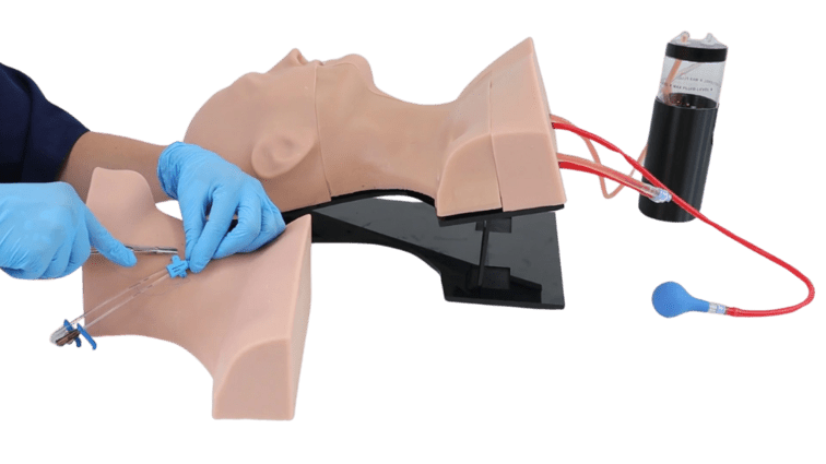 Dieser Simulator bildet die Gefässanatomie realitätsgetreu nach und bietet einen hohen Grad an Realismus für die Entwicklung praktischer Fertigkeiten in der zentralvenösen Katheterisierung.