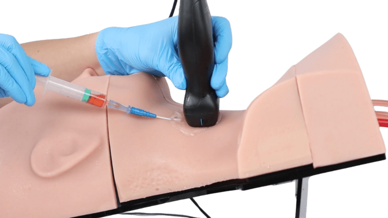 Der TruCVC ist ein Oberkörpertrainer für Erwachsene, der die korrekte Vorgehensweise bei der Anlage zentralvenöser Katheter unter Ultraschallkontrolle vermittelt.